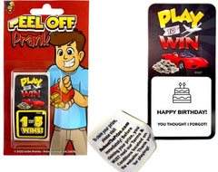 All you have to do is place your sticker of choice and plant the item for your intended victim to “Win Big”! The prizes named are just for laughs or to announce something to friends and family. Be sure to check out the different versions for many occasions. This prank works especially well on fast food or To-go items, chips, candy bars, gift items, and more. The possibilities are endless! Ones to make you laugh, cause confusion, stir up some chaos, or even create smiles! In order to know which peel off prank you have in hand, we put a key code list included with your order & the key code number is located under the vehicle on the sticker. Don’t forget you can order losing game pieces as well that say “Try Again” (you can open the losing piece yourself in front of them) to make it seem more realistic when your victim’s game piece is a “Big Winner”!! On the peel off it also names RedeemThePrize.com , where they enter their code, & it tells them they’ve been pranked. Tag us in your prank videos!