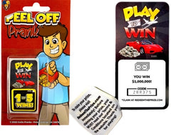 All you have to do is place your sticker of choice and plant the item for your intended victim to “Win Big”! The prizes named are just for laughs or to announce something to friends and family. Be sure to check out the different versions for many occasions. This prank works especially well on fast food or To-go items, chips, candy bars, gift items, and more. The possibilities are endless! Ones to make you laugh, cause confusion, stir up some chaos, or even create smiles! In order to know which peel off prank you have in hand, we put a key code list included with your order & the key code number is located under the vehicle on the sticker. Don’t forget you can order losing game pieces as well that say “Try Again” (you can open the losing piece yourself in front of them) to make it seem more realistic when your victim’s game piece is a “Big Winner”!! On the peel off it also names RedeemThePrize.com , where they enter their code, & it tells them they’ve been pranked. Tag us in your prank videos!
