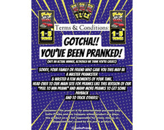 Disclaimer: This product is for entertainment purposes only! GoDo Pranks and any company whose product you place this product on are not responsible for the prizes, misuse, or disappointment caused by this prank product.